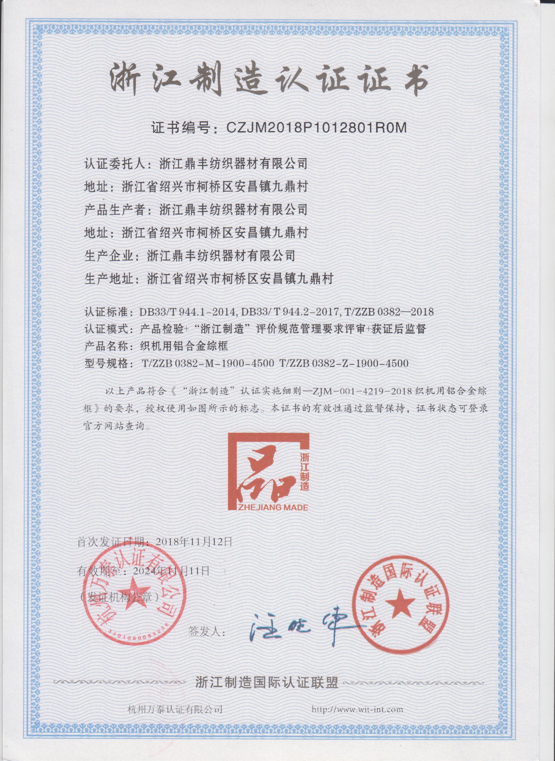 公司現(xiàn)有固定資產(chǎn)6000余萬元,員工300余人,現(xiàn)具有年產(chǎn)噴氣異型筘12萬米,劍桿筘32萬米,噴水筘5萬米,綜框20萬片,鋼片綜2億片,停經(jīng)片1.5億片, 織軸1.2萬套的生產(chǎn)能力。公司“越泉”商標被評為“中國馳名商標”。公司通過ISO9001 :2015國際質(zhì)量體系認證,ISO14001:2015國際環(huán)境管理體系認證,ISO45001:2018國際職業(yè)健康安全管理體系認證,噴氣織機用鋼筘和織機用鋁合金綜框獲得“浙江制造”品牌認證,公司擁有自營進出口權(quán),產(chǎn)品暢銷全國并遠銷印度、巴基斯坦、土耳其、埃及、哥倫比亞、意大利等國家和地區(qū)。